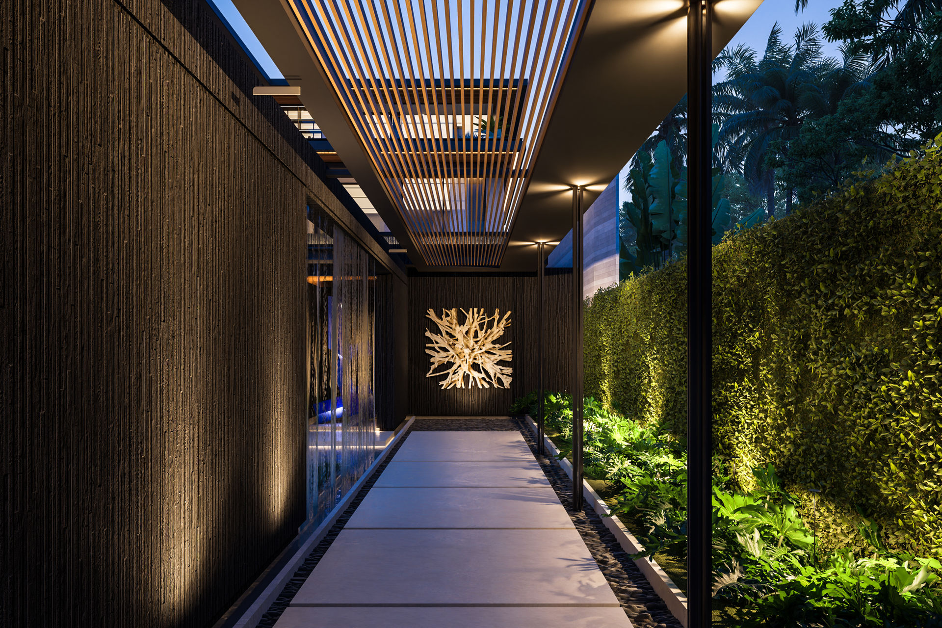 The architectural composition stretches the length of the space, bringing out textural earthiness that evokes the senses while the interior strikes a balance between sophistication and elegance.